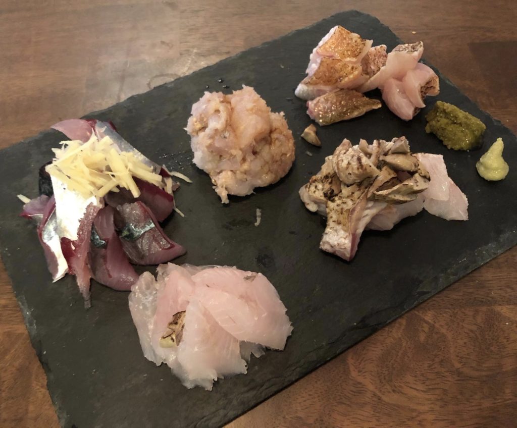深海サバ -ユメ刺身-ドンコ肝和え-アカムツ炙り