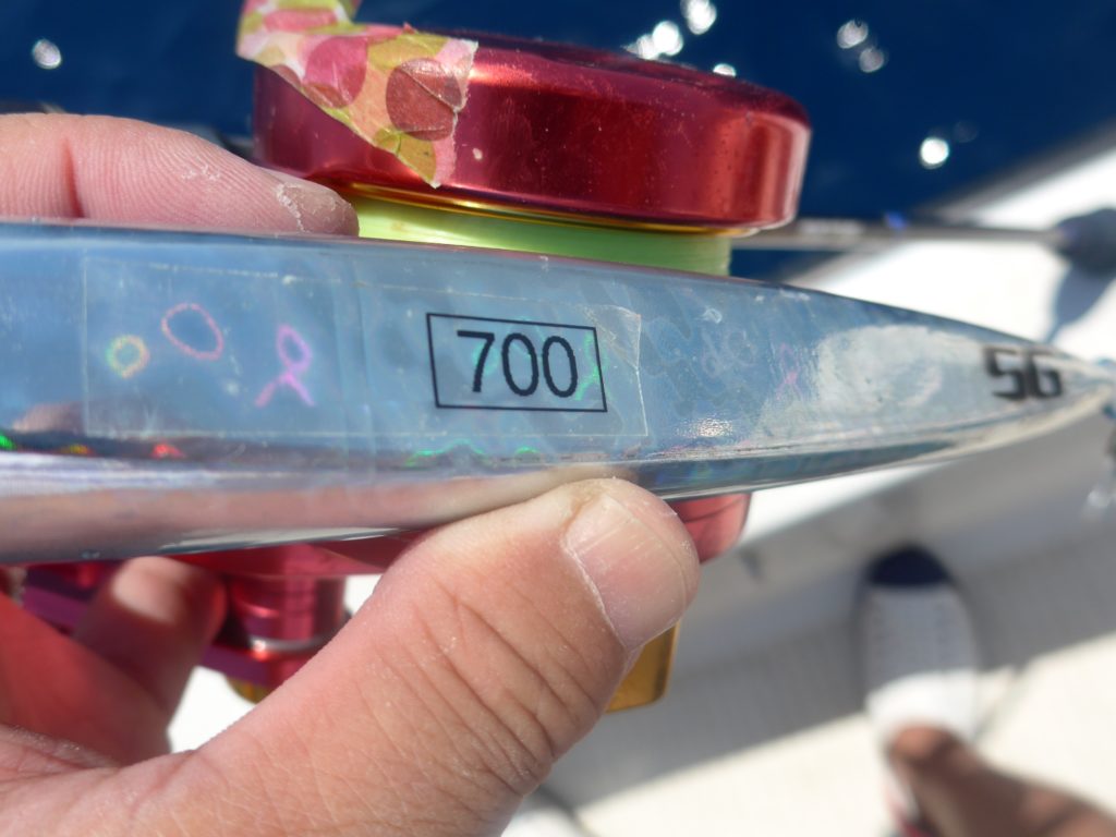 早速先ほどの1軍に入ったばかりのスピンドルナロー700g殉職しました。それと同時に、ひかかっていたガイドが抜けました。下側の足が抜けた状態なのでテープで一時的に補強して釣りには支障はなかったのです。