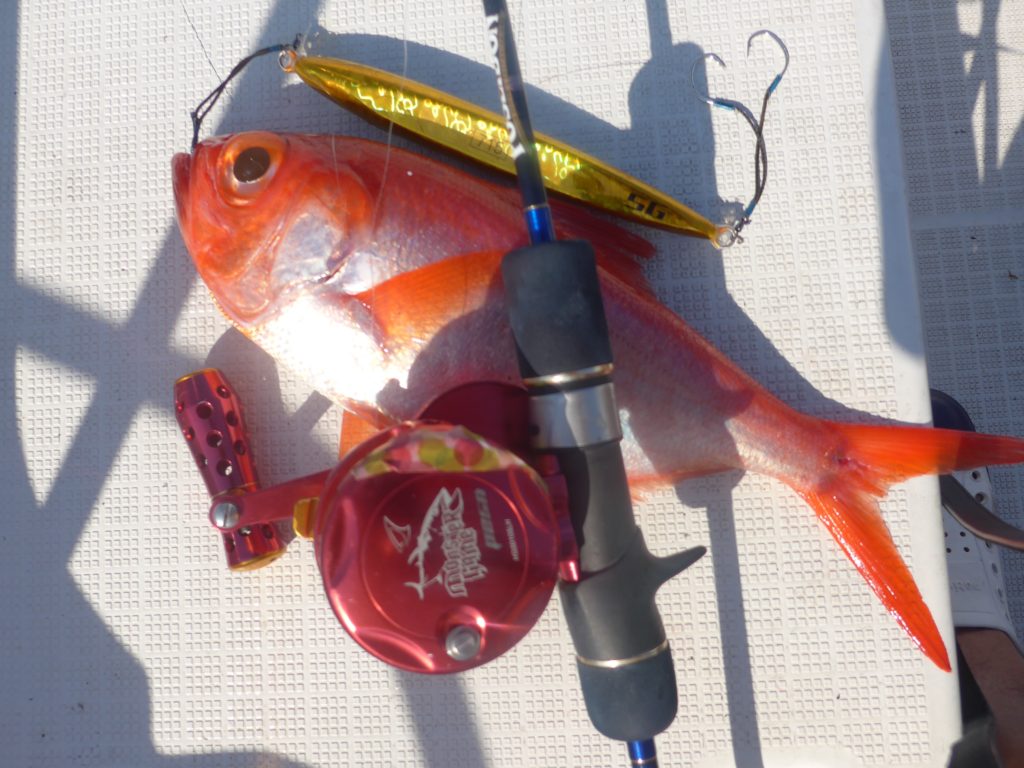 最近の中深海や近海ジギングよりもヒットも多いかもしれません。間違いなく中深海よりは魚の反応がありますね。