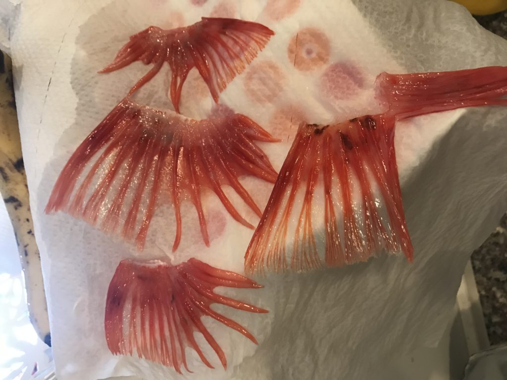 今回はお腹開いた瞬間から「美味しい」確定です。この脂の感じわかりますか?うまいやつです。ユメカサゴは前回の9日熟成よりも圧倒的に初日が美味しいというのが現在の結論です。
