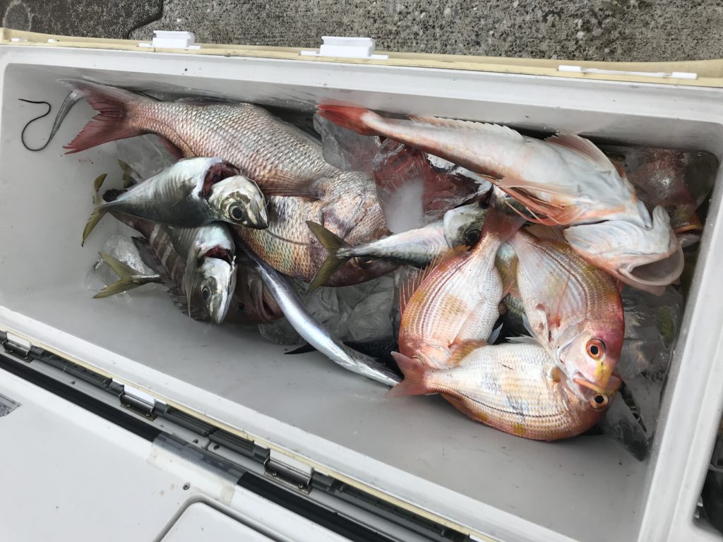 ハタやデカアジは釣れませんでした。イワシのベイトの層はごく一部で一瞬出たイワシベイトも続かず、サビキジギングの人もアジが絶好調というわけではなかったみたいです。