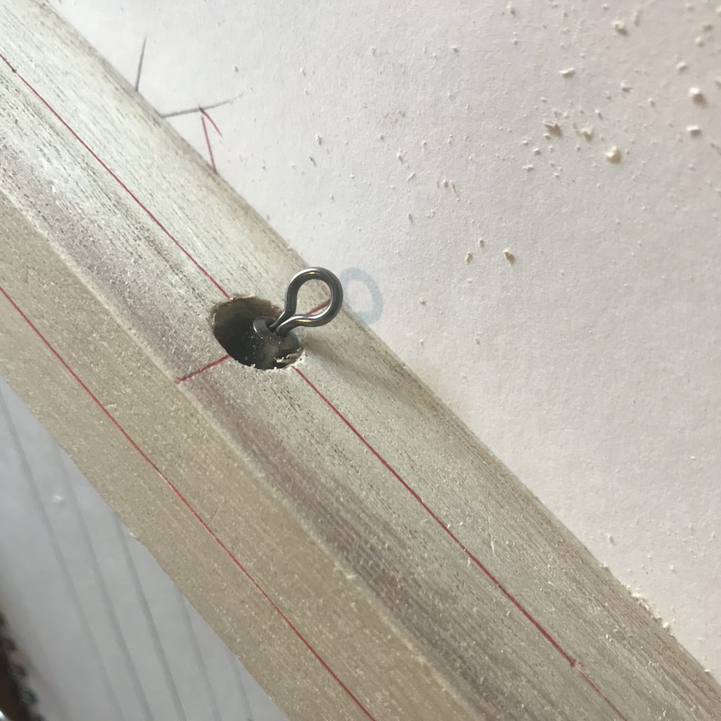 全て押し込んでもフロントフック穴にドリルの先端がいつになっても出てきません。