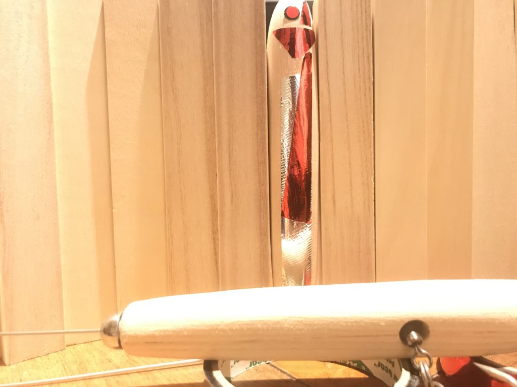 加工前につけてみるとまだルアーっぽくはありません。😗