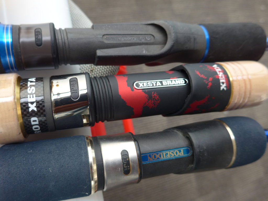 XESTA FULL DEPTH B64-MHが真ん中です。リール側の最後ガイドが高い。