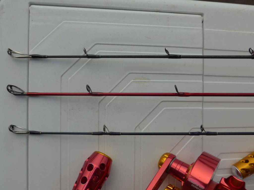 こうやって並べるとんまり、ここは差がありませんね。若干、FULL DPETHの方がPSLJ 603-6 と比べると太い。ブランク材の太さが違いますね。そもそも、700g AVEのロッドなので当たり前といえば当たり前なのですが、ここは「細い方が感度がいい」という定説が正しいとすると?ですが、これはまあ実釣で確認しないとわからないですね。「アタリとしてはわかりやすい部類の魚」なのであんまり関係ないかもしれませんが😅
