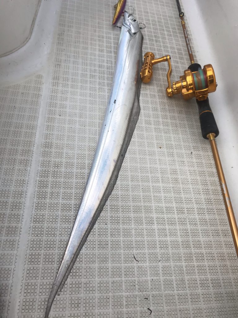 最近アカムツとタチ場が「近い」とは聞いていましたが、まさか250m越えでタチウオがつれるとは😗まあ美味しいからいいのですが