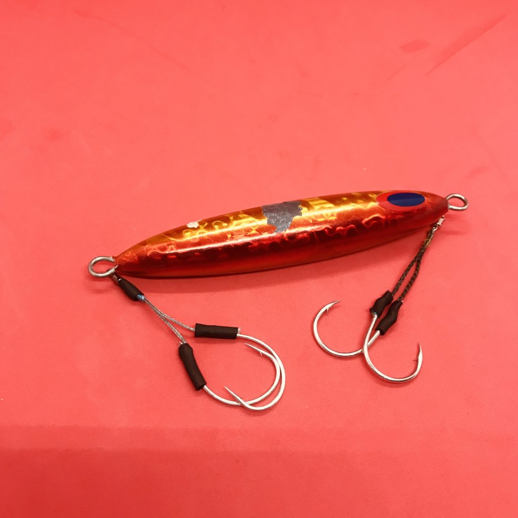 ロングジグをの場合、70-100mmぐらいのフックで合わせて行くことが多いです。