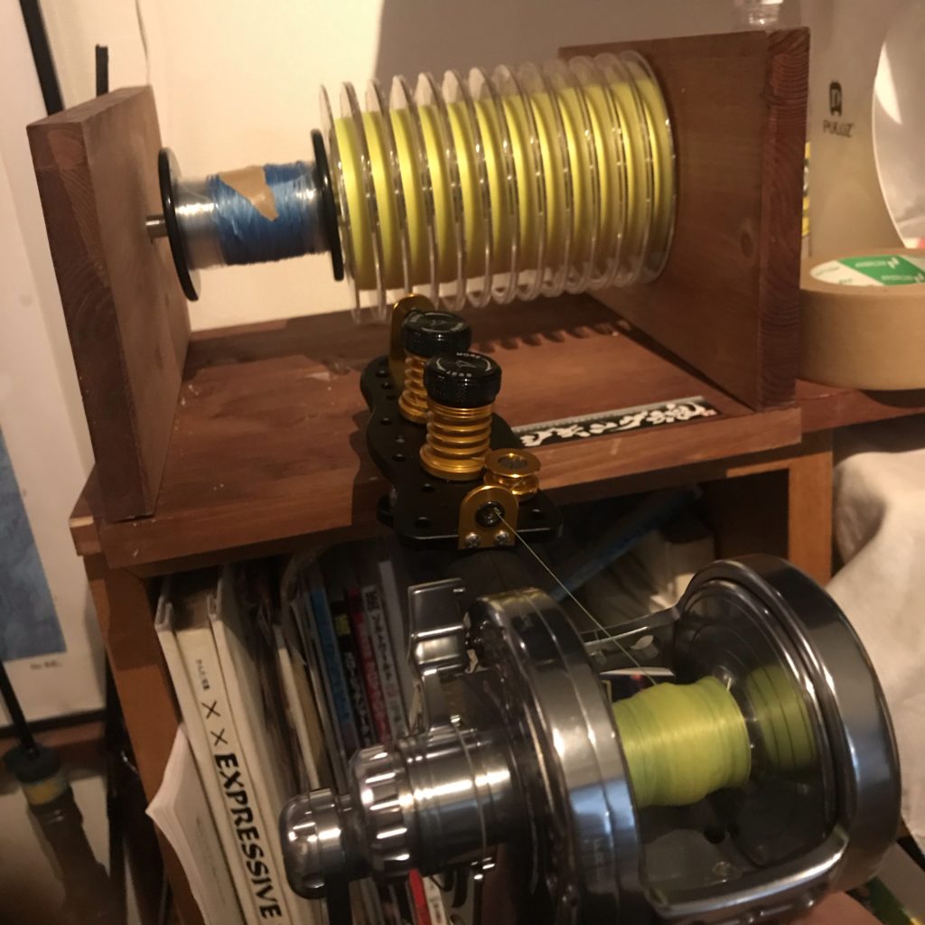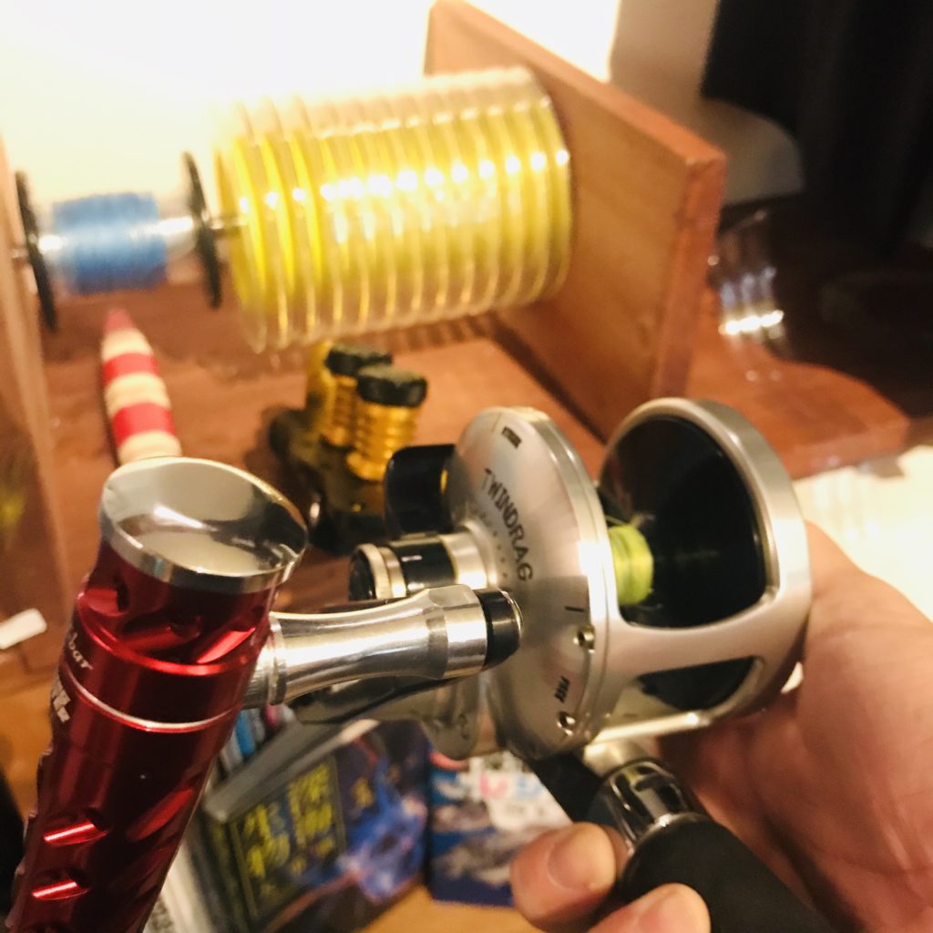 先日のセットジグに1200mスプールをセットして深海イメトレスタートです。