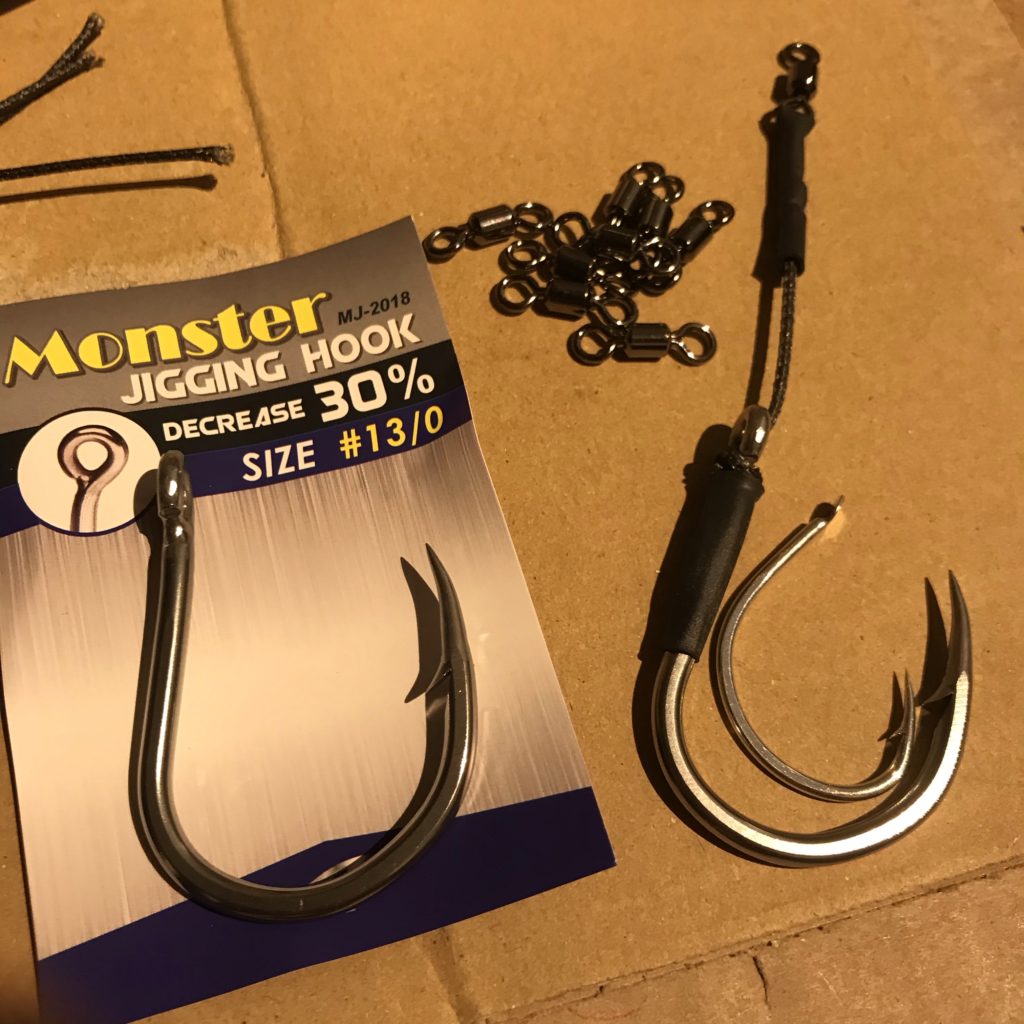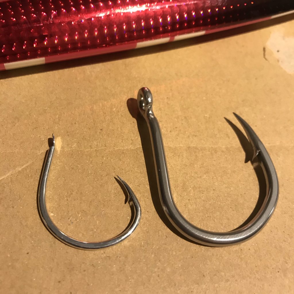 年に数度のアブラボウズ 用のフックについて、いつもになって直前で色々作成を始めています。(マグロフックとも違うし)