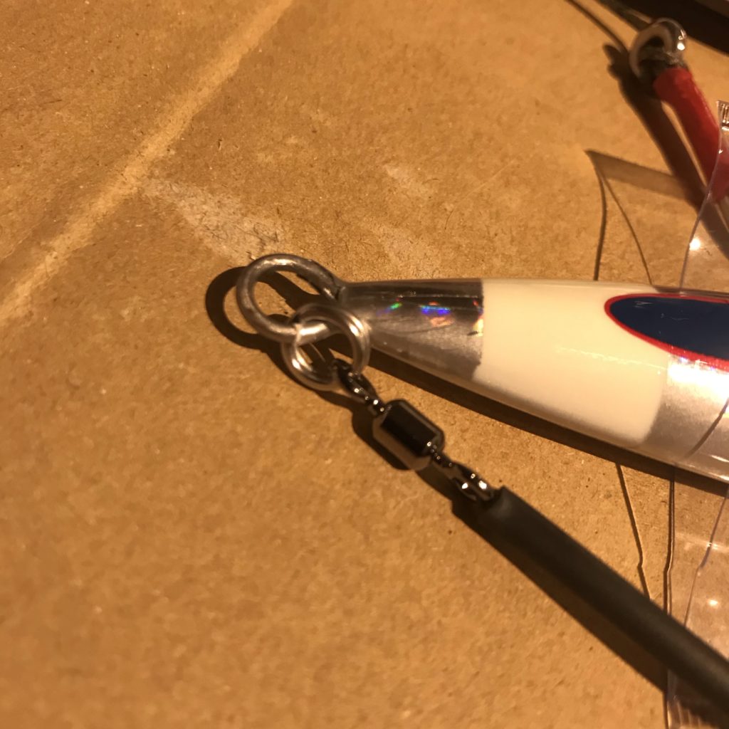フックとリングはそのままです。ジグ先頭にスイベルってパターンもありですね