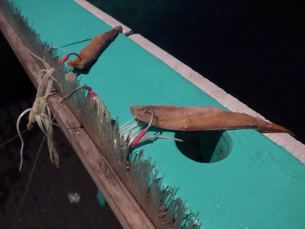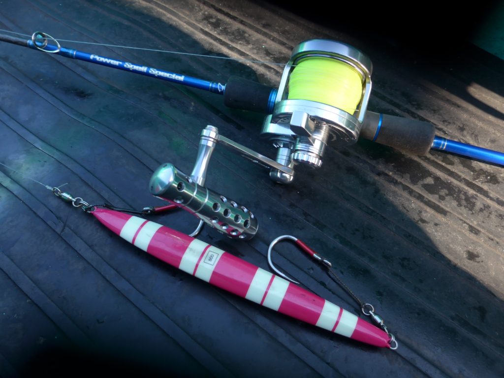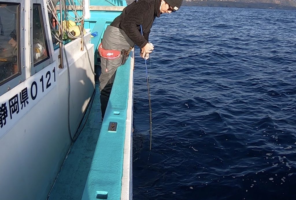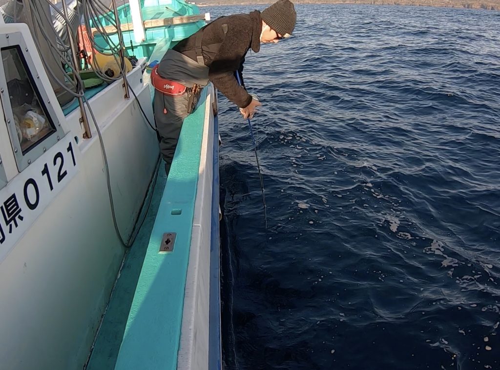潮は動いてはいる。早くもなく、底も取りやすい。問題無し、キンメの時よりも底どりを慎重に大目に巻いてライン伸ばして、大きく動作して、ってなかなかの肉体労働です。