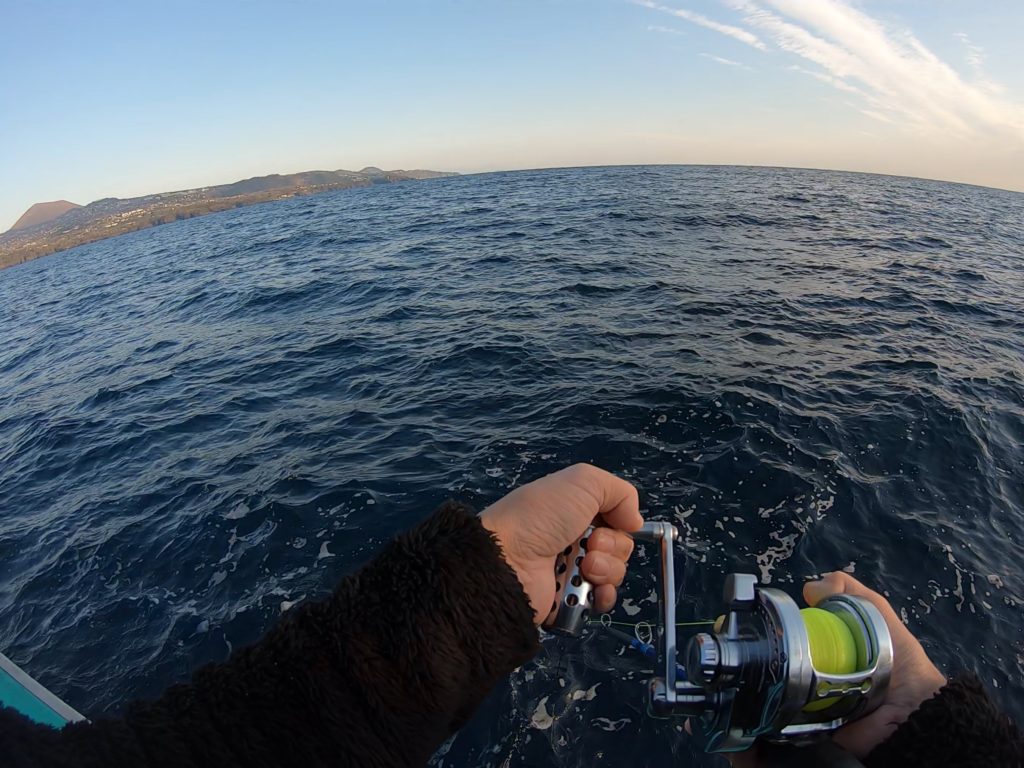 時間かけて巻き上げます。ストレートで巻き巻き、バラムツみたいに暴れるようなことはなく、最初ちょっと首を振ったぐらい。それ以外は少しづつ巻き上がってきます。