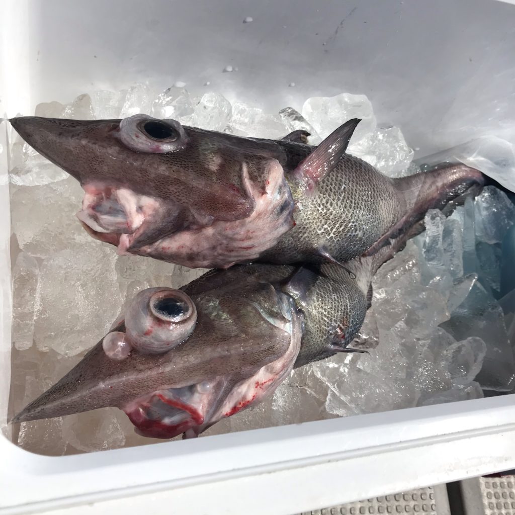 いつもよ「水深アベレージ」が深めです。しかも、みんな「ガッツリ」深場タックルなので回収も早いです。久々に500m「ガッツリ」なので、怠けた体に鞭打って、筋肉トレーニングでしたが、回収は「スピード大型電動リール」でも回収時はゆっくり上げて来て、フックも船縁に一個づつ投入の準備をしながら回収されているので、「手巻き」も「自動巻き」もこの深さでも改めて「変わらないんだな」と思いました。