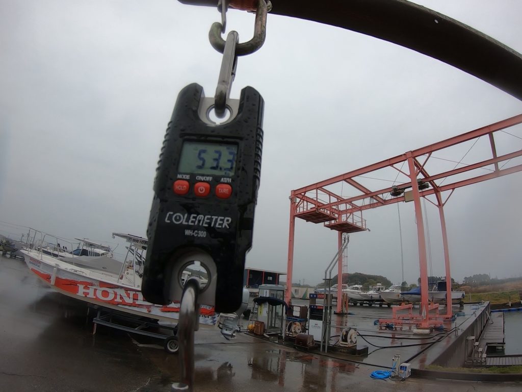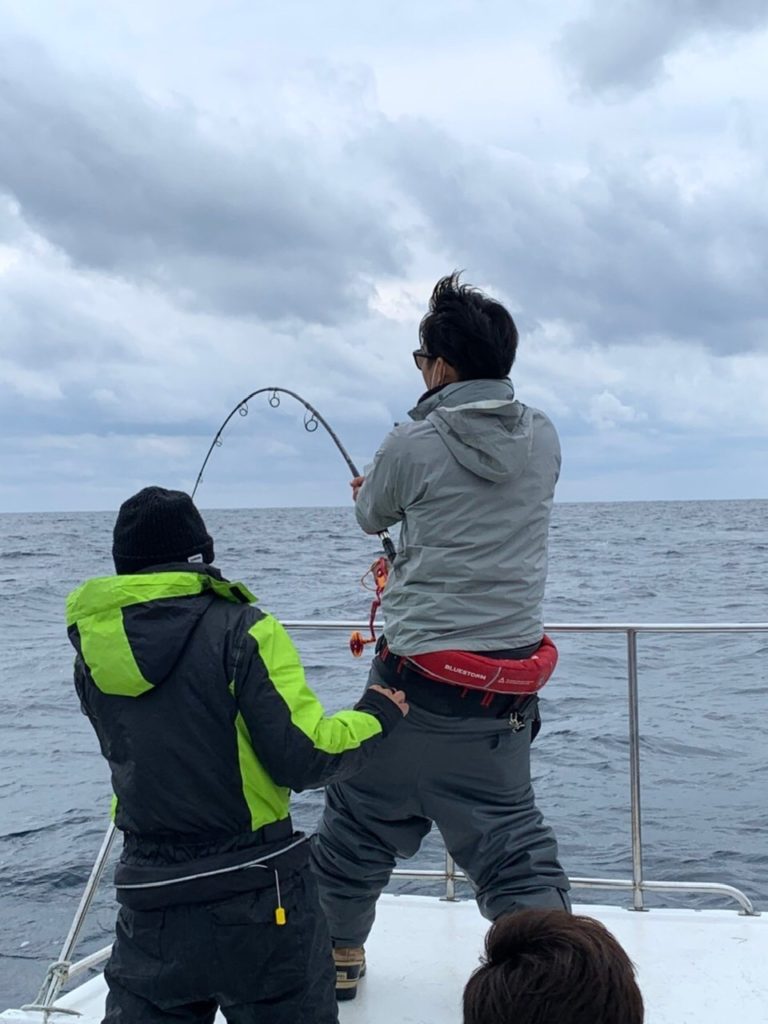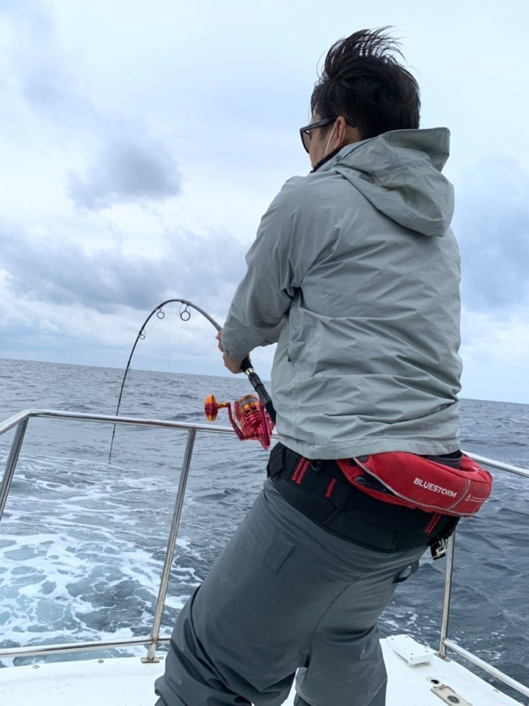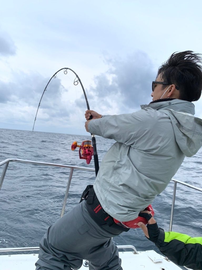 一瞬「グイッ」とテンション抜けた時は焦りましたが、少し船が流れてやっと魚も疲れてきたのか少しずつ浮いてきます。