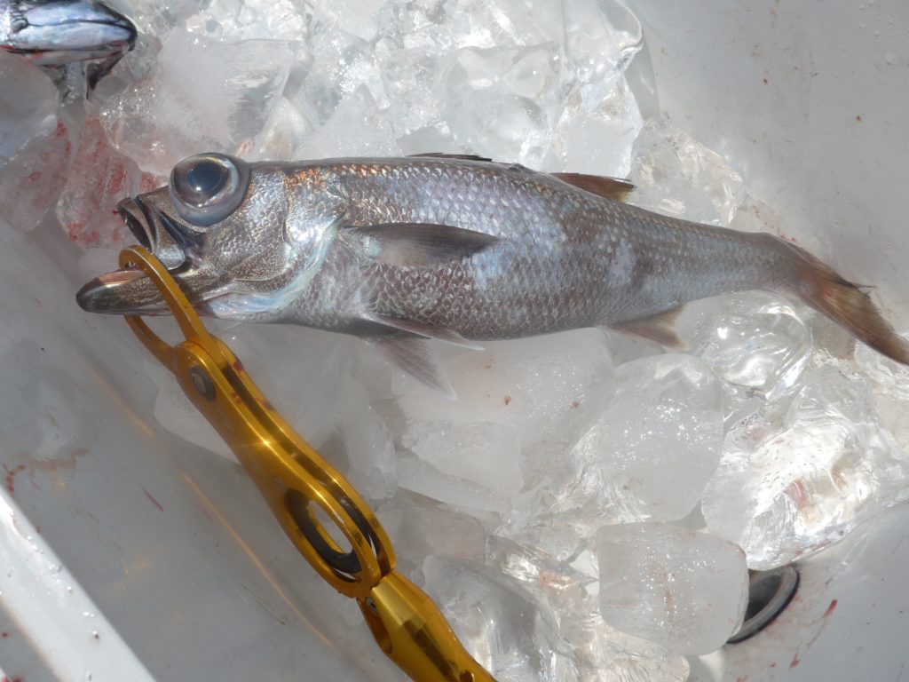 アカムツ坊主でもどちらかというと、クロムツの方がジグへの反応がいいので数が釣れることが多いです。ただ型がちょっと小さい。遠州灘だと少し、アカムツと比べると見劣りします。たまにクロムツはいらないから「いる?」って人も多いですが最近美味しい食べ方を見つけました。