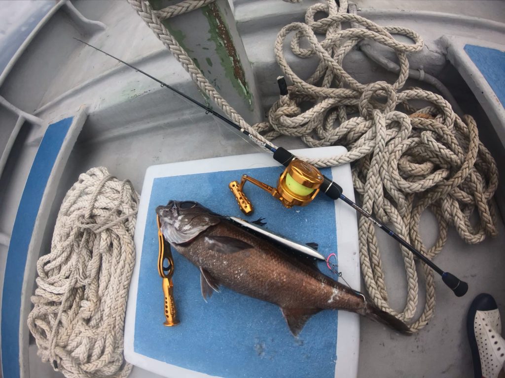 アカムツよりは、少し棚が上の方まで上がってくるのでよくアカムツを期待して、上げてきたら、「黒ムツ」だったというパターンも多いです。