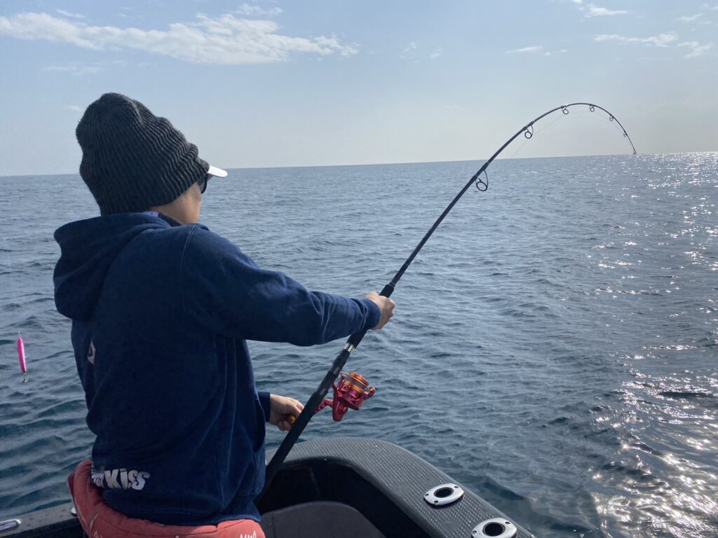 (前回、曲げたくて、ジギングロッドで投げてましたが飛距離に限界が・・・)